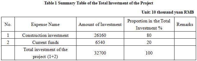 The total investment of the project is 327 million yuan, of which the construction investment is 261.6 million yuan.