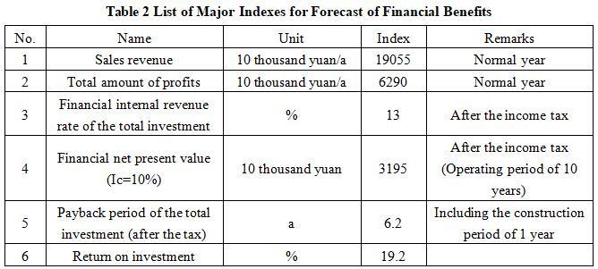 After the project reaches the production capacity, its annual sales income will be 190.55 million yuan, its profit will be 62.9 million yuan, its investment payback period will be 6.2 years (after the tax, including the construction period of 1 year) and its investment profit rate will be 19.2%.