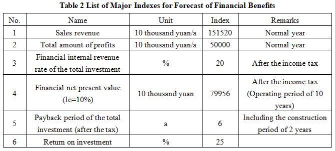 After the project reaches the production capacity, the annual sales income is 1.5152 billion yuan, the profit is 500 million yuan, the investment payback period is 6 years (after the tax, including the construction period of 2 years), the investment profit rate is 25%.