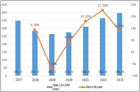 Table 3 Output and Growth Rate of Chemical APIs in China from 2017 to 2023