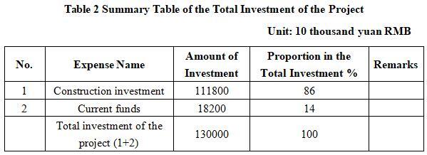 The total investment of the project is 1.3 billion yuan, including the construction investment 1.118 billion yuan, and current funds 182 million yuan.