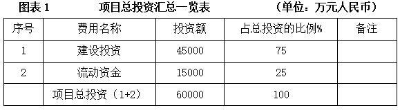 项目总投资60000万元,其中建设投资45000万元。