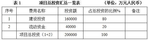 项目总投资200000万元,其中建设投资160000万元。
