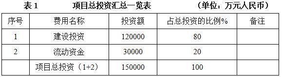 项目总投资150000万元,其中建设投资120000万元。