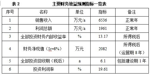 项目达产后,年销售收入6536万元,利润1961万元,投资回收期6.1年(税后,含建设期1年),投资利润率19.61%。