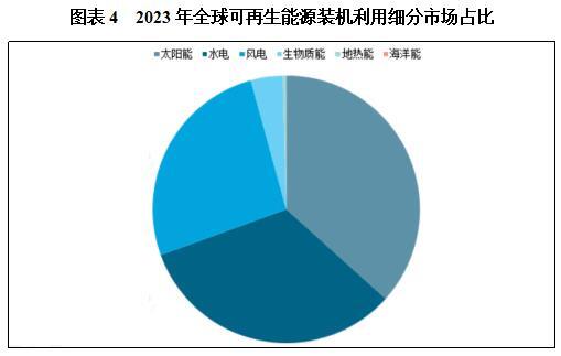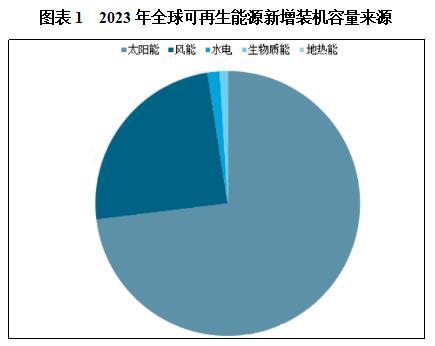 2023年,全球可再生能源新增装机容量再创新高,达到473吉瓦,同比增长13.9%,占全球电力新增装机容量的86%。值得注意的是,太阳能和风能继续主导可再生能源扩张,占2023年可再生能源新增装机容量的97.6%,达到历史新高。其中,太阳能发电装机容量大幅增加346吉瓦,同比增长32.2%;风电增加116吉瓦,同比增长12.9%;水电增加7吉瓦,同比增长0.6%;其他包括生物质能新增4.4吉瓦,同比增长3%,地热能新增0.2吉瓦。全球新能源利用行业进入高速增长通道。