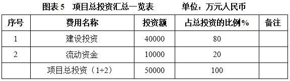 本项目总投资为50000万元,其中:建设投资40000万元,流动资金10000万元。