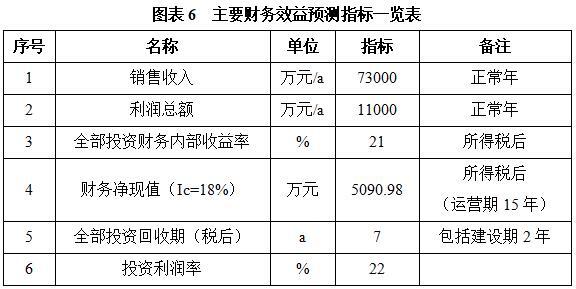 项目达产后,年销售收入73000万元,利润11000万元,投资回收期7年(税后,含建设期2年),投资利润率22%。