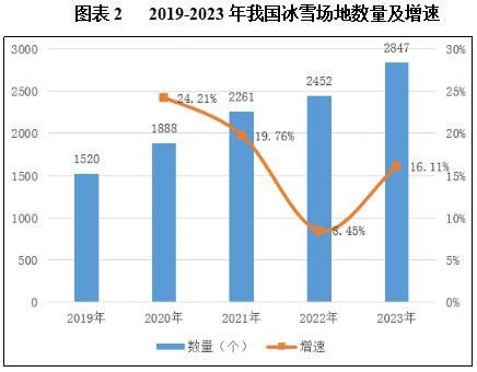 后冬奥时代,随着冰雪运动的不断普及与深入,各地冰雪运动场地设施建设步伐不断加快,滑冰场馆和滑雪场馆数量持续增长。2023年全国冰雪运动场地数量达到2847个,较上年度增长16.11%。