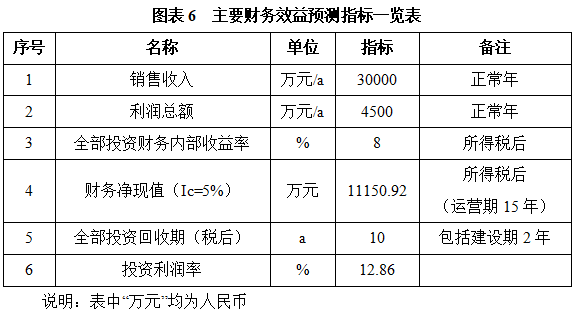 项目达产后,年销售收入30000万元,利润4500万元,投资回收期10年(税后,含建设期2年),投资利润率12.86%。