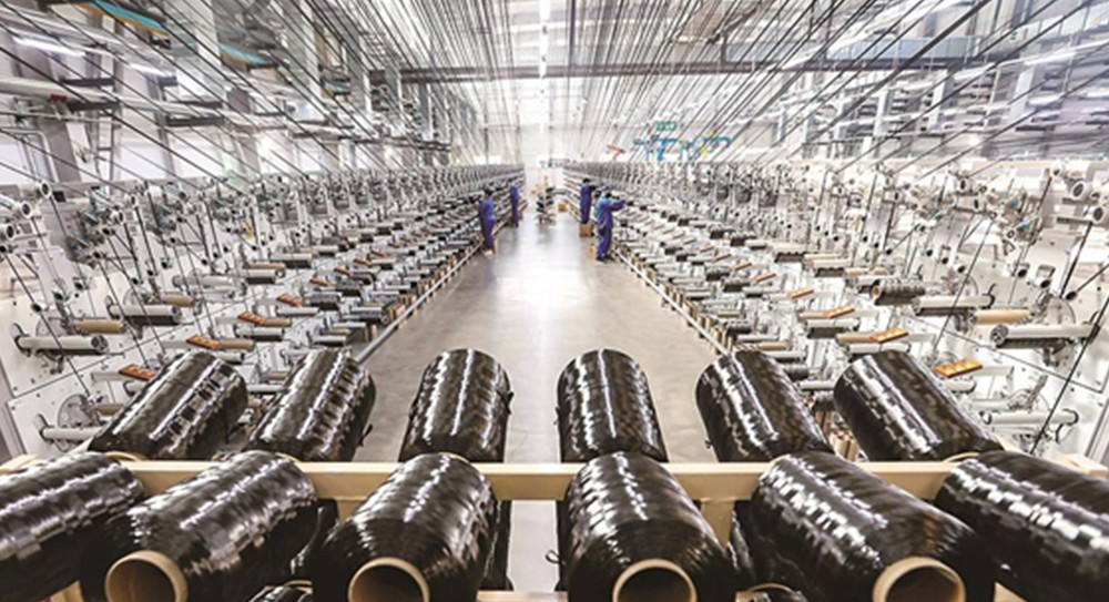吉林化纤集团的生产线上,雪白的原丝走过300多米生产线,变身为新材料中的“黑色黄金”——碳纤维。