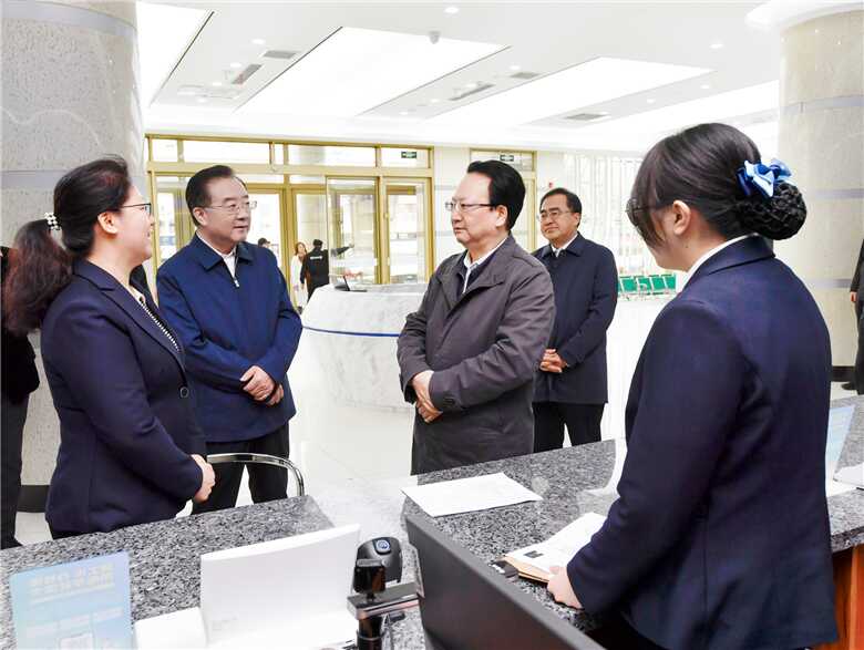 4月16日,省委书记景俊海以不打招呼、直插基层方式,到省人社厅暗访检查工作,在省政务服务中心人力资源和社会保障分中心实地察看窗口和自助服务情况。邹乃硕 张野 摄