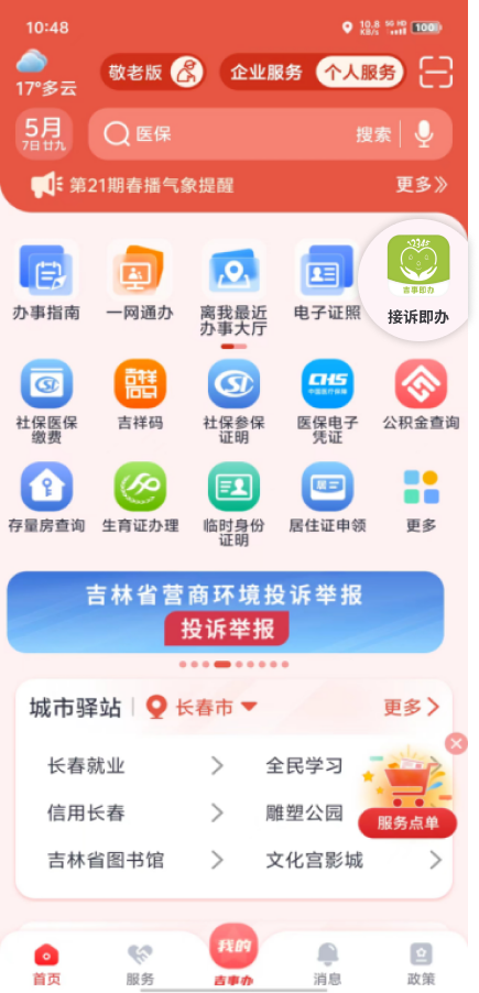 手机端入口:打开“吉事办”APP或吉事办微信小程序,点击“接诉即办”图标登录。