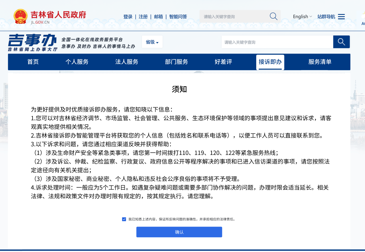 PC端入口:您通过吉林省人民政府网站或登录吉事办网上办事大厅,点击“接诉即办”栏目登录。