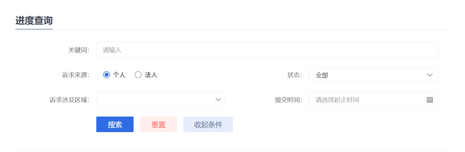 “进度查询”,流程公开,随时查看。通过输入诉求内容关键词、诉求来源、诉求状态、诉求涉及区域、诉求提交时间等多种方式,快速查询诉求办理进度,查看办理状态和诉求详情。