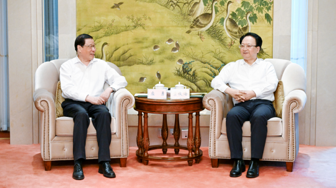 6月11日,省委书记景俊海在长春拜会最高人民检察院党组书记、检察长应勇一行。张野 邹乃硕 摄