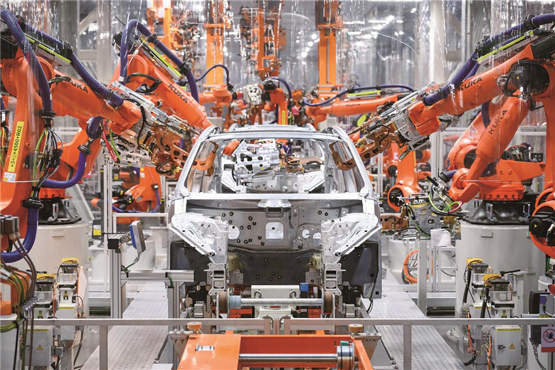 奥迪一汽新能源汽车有限公司长春生产基地焊装车间。苑激刚 摄